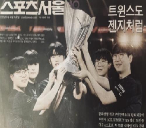 重量级冠军!GEN全员举起冠军奖杯图登上“首尔体育封面”