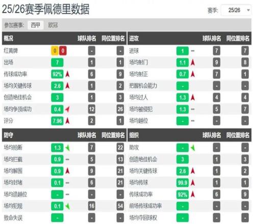 当然,更重要的是佩德里在整个西甲已经打完的七轮比赛,个人的评分几乎就没有下过8.0(对巴列卡诺他们发挥很不佳,可佩德里保持了近7.0的基础分),这的确是令人非常称赞的一个事情对出任后腰人选来讲则更加不容易了。而很显然对佩德里来说,这已经成为家常便饭,虽然他只有22岁,可是在诺坎普已经出战了超过210场比赛之多,打入27球、贡献了21个助攻,整体上的发挥堪称是超越了哈白布在同年龄时表现,大有成为未来大师的可能。