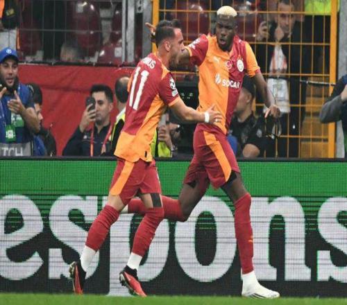 第15分钟,奥斯梅恩主罚点球命中,帮助加拉塔萨雷主场1-0先下一城,现场数万球迷瞬间沸腾了。