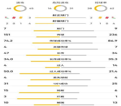 控球率:38%-62%