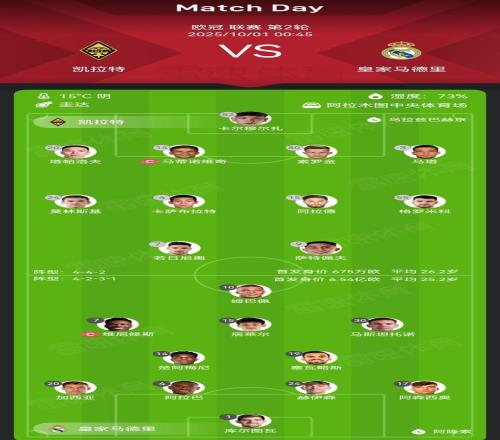 值得一提的是,两队首发身价相差悬殊:凯拉特首发总身价只有675万欧元,而皇马首发11人总身价为6.54亿欧元,是凯拉特首发总身价的96.9倍。