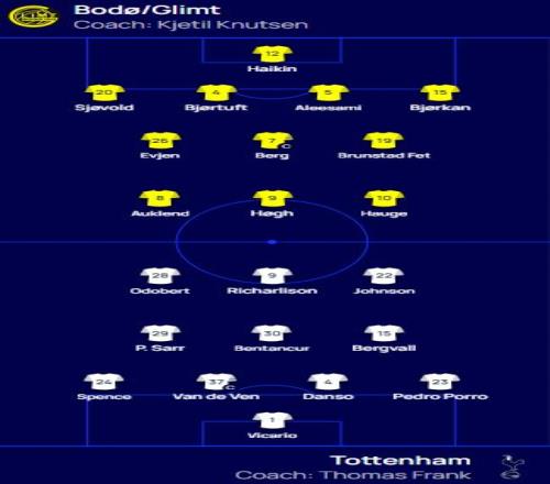雷速体育10月1日宣 欧冠联赛阶段第二轮,博德闪耀主场迎战热刺。赛前两队首发阵容出炉。