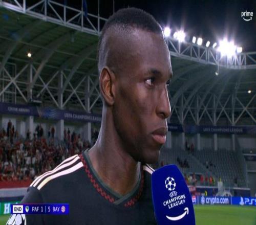 雷速体育10月1日宣 北京时间10月1日03:00,欧冠联赛阶段第二轮,拜仁慕尼黑客场5-1大胜帕福斯FC,本场比赛结束之后为球队传射建功的杰克逊接受采访。