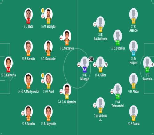 皇马首发:1-库尔图瓦、17-阿森西奥、24-赫伊森、4-阿拉巴、20-弗兰-加西亚、14-楚阿梅尼(80'6-卡马文加)、19-塞瓦略斯、15-居莱尔(80'5-贝林厄姆、30-马斯坦托诺(70'21-迪亚斯)、7-维尼修斯(70'11-罗德里戈)、10-姆巴佩(81'16-贡萨洛-加西亚)