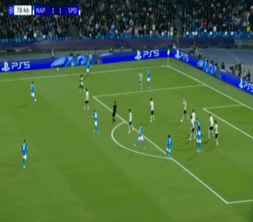 第79分钟,德布劳内左路传中,霍伊伦抢在门将身前甩头攻门,帮助那不勒斯完成绝杀。