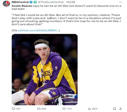 湖人后卫奥斯汀·里夫斯在接受采访时语出惊人:“我完全有能力入选全明星,但我不想靠刷数据来实现这个目标。我不想处在那种只能不断出手、只能刷数据的环境,那样的全明星荣誉我根本不在乎。”这番表态在NBA圈内掀起轩然大波,也让他在这个夏天的续约风波再次成为焦点。