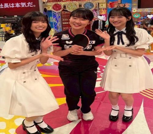 近日,日本乒乓球名将张本美和社媒晒与乃木坂46成员合影:真的非常开心,感谢这次宝贵的机会!