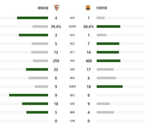 本场比赛巴萨状态低迷,让主场作战的塞维利亚早早取得了2球的领先,尽管半场结束前,拉什福德为球队扳回一城,但是下半场巴萨连续浪费机会,最终爆冷在客场1-4惨败。