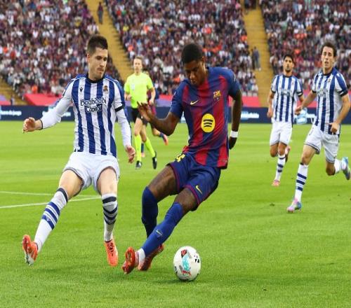 拉什福德打入西甲处子球,也连续5场西甲参与进球。拉什福德上一次连续5场联赛参与进球,还是在2023年2月19日,当时他连续5场英超打入6球。